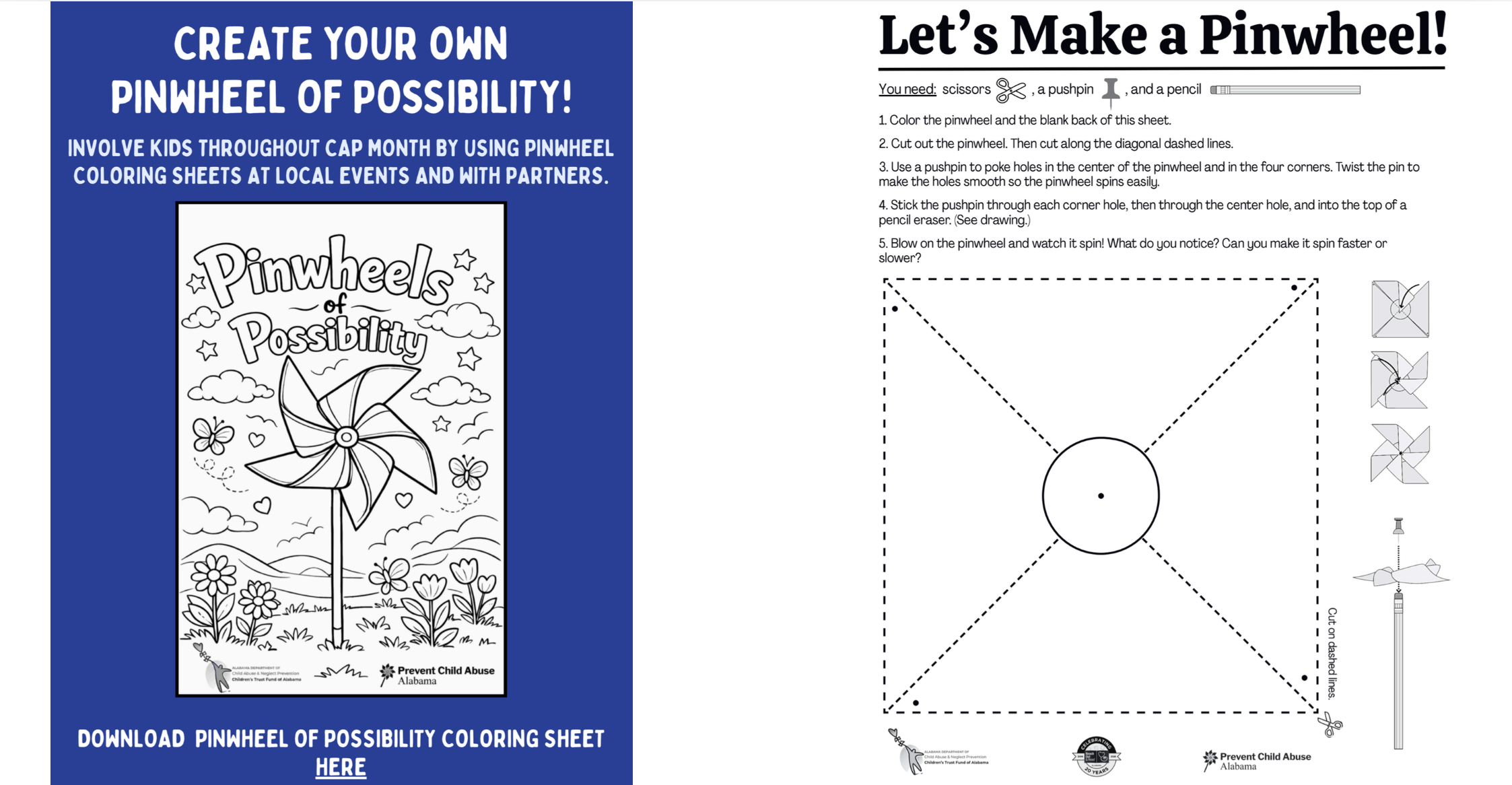 This year’s theme, Pinwheels of Possibility, reminds us that every child deserves a bright future and that each of us has a role in creating it. The pinwheel is a symbol of hope, resilience, and the joyful, healthy childhoods we want for every Alabama child.